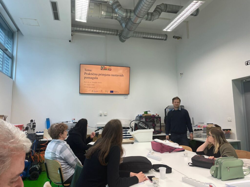 Sudionici su imali priliku upoznati se s konkretnim primjerima korištenja nastavnih pomagala u STEM području, s naglaskom na njihovu praktičnu primjenu u učionici. Kroz interaktivni rad i demonstracije, istaknuta je važnost iskustvenog učenja, aktivnog uključivanja učenika te povezivanja teorijskih znanja s praktičnim zadacima.